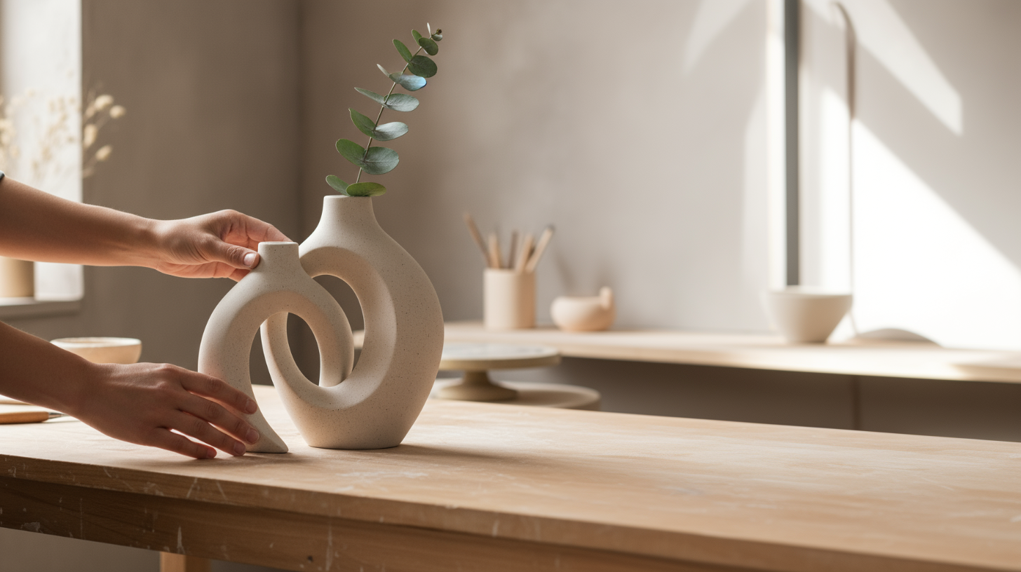 Some objects refuse singular definition—neither purely vessel nor simply sculpture, but something more considered. This handcrafted ceramic vase transforms botanical display into an exercise in negative space and organic form. Its distinctive circular aperture creates a frame within the form itself, elevating humble cuttings and dried arrangements into studies of balance and intentional emptiness.